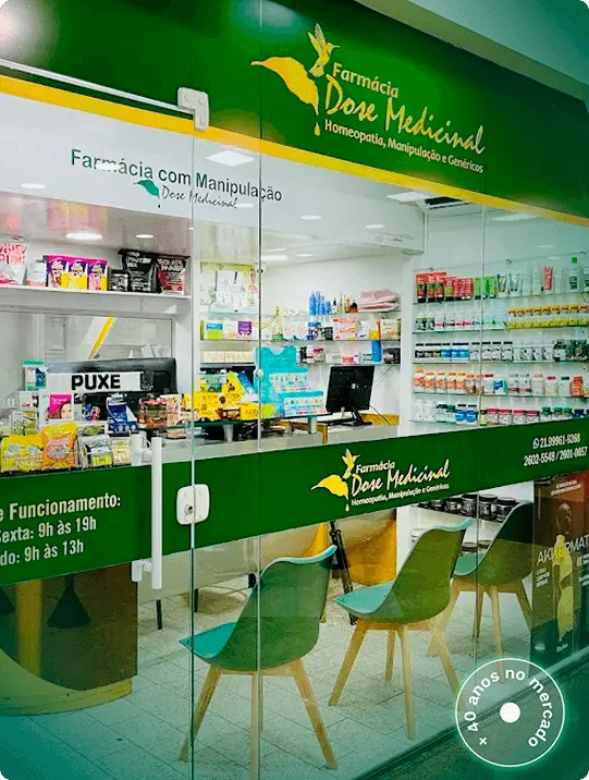 Há mais de 40 anos, a Dose Medicinal se dedica em soluções farmacêuticas personalizadas, unindo ciência e cuidado para promover sua saúde e bem-estar. Nosso pilar central é o compromisso com você, oferecendo atendimento individualizado e fórmulas manipuladas feitas sob medida para atender às suas necessidades.